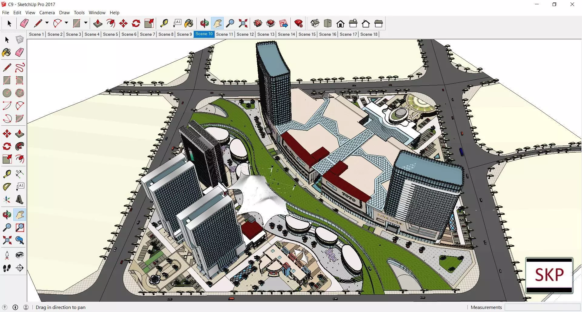 The model has material settings that define how surfaces look (color, shine, transparency, etc.).