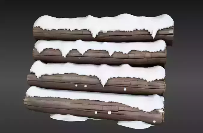 Snowy Wooden Log Pile 3D Model Winter Game Ready Snow Scene Low-poly 3D model