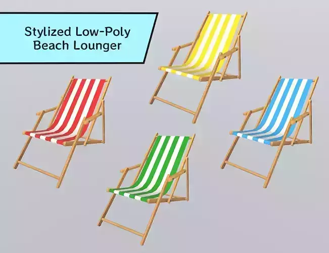 Bring summer vibes to your 3D scenes with this stylized beach lounger set. This pack includes four colorful low-poly chairs with striped fabric in red, yellow, green, and blue. Ideal for beach scenes, resort environments, mobile games, and VR/AR experiences. The lightweight design and optimized topology ensure excellent performance and easy integration across various platforms.