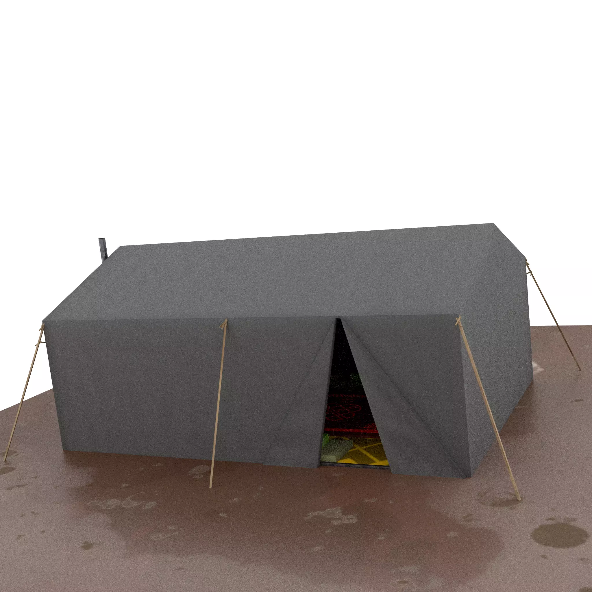 Tents are set up next to each other in a row with the distance between the rows of 4 meters approximately.