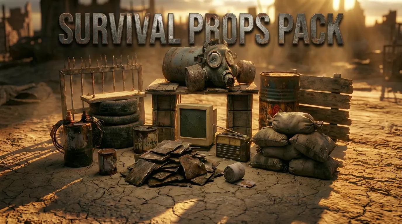 Bring your post-apocalyptic world to life with the Ultimate Survival Props Pack. This collection provides 24 unique, high-fidelity models designed specifically for game developers. Each asset is meticulously crafted with realistic weathering, rust, and grime to fit seamlessly into any ruined or wasteland setting.