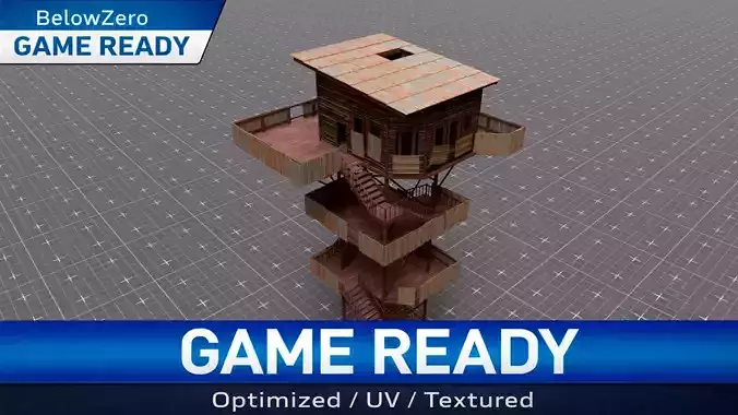 A detailed post-apocalyptic watchtower structure, built from reclaimed wood, corrugated metal sheets, and OSB panels.This modular building captures the atmosphere of survival and decay, designed as a fortified outpost or elevated base — perfect for post-apocalyptic, survival, or military-style environments.