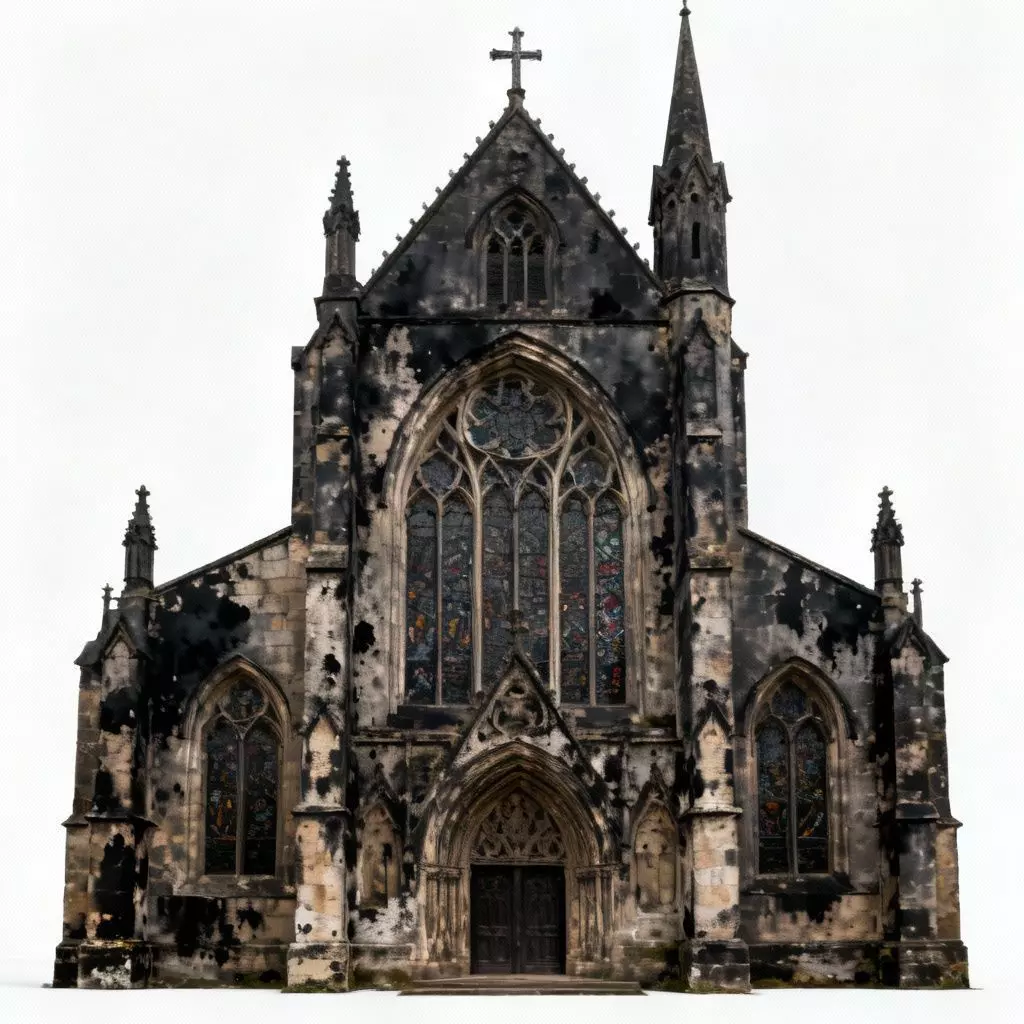 The Overall Concept This is a large, imposing religious structure that has stood the test of time—and perhaps neglect. It represents a High Gothic style but with a dark, gritty twist, making it perfect for horror games, historical cities, or post-apocalyptic settings.