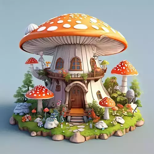 This charming 3D model of a mushroom house is perfect for adding a touch of fantasy to your projects. Ideal for game development, AR/VR experiences, architectural visualization, animation, and even 3D printing. The model features a detailed and stylized design, complete with a large mushroom cap roof, wooden accents, a small balcony, and a vibrant garden at its base. Available in multiple formats including GLB, OBJ, STL, FBX, and DAE, it is optimized for both real-time and offline rendering. The topology is clean and efficient, allowing for easy modifications and subdivision if needed. PBR textures are included, ensuring realistic and vibrant visuals. Whether you're creating a magical forest scene, a whimsical children's game, or a unique architectural piece, this mushroom house offers a versatile and captivating asset. Its low-poly nature makes it suitable for mobile games and AR applications while still retaining impressive detail for high-end renders. The model is UV unwrapped for easy texturing and customization. Bring a touch of fairytale charm to your work with this delightful mushroom dwelling.