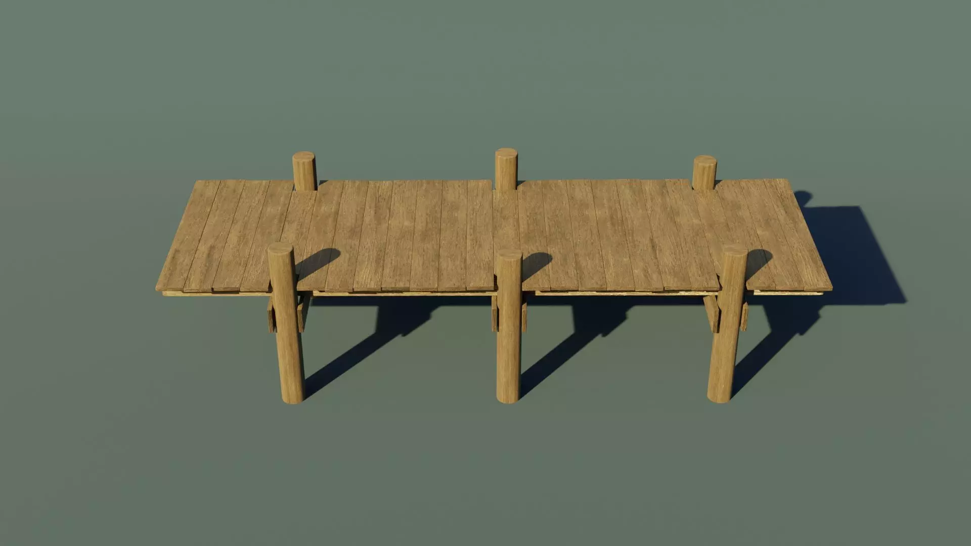 A small wooden dock. It is a wooden dock placed on round collumns. Everything is made out of wood but the texture can easily be changed and another material can be applied. The model is completely modular and can be extended in any direction, it all depends on your imagination. Perfect for placing on lakes, rivers or the seaside.