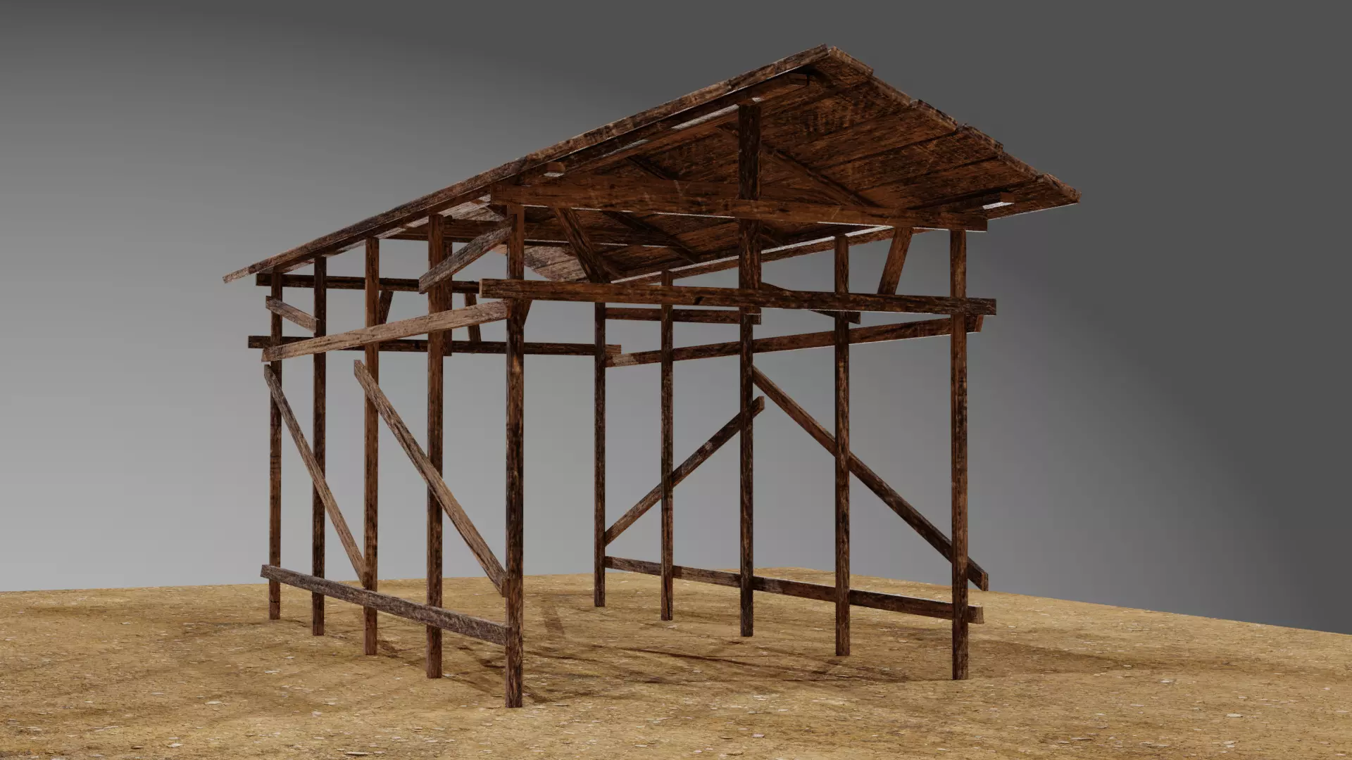 Wooden Shed or Shelter Low-poly 3D model