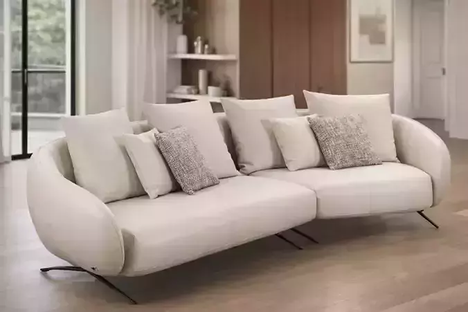 This Luxury Curved Sofa 3D model features a sleek, modern design with soft curves and elegant proportions, making it ideal for high-end interior visualizations, architectural renders, games, and cinematic scenes.
