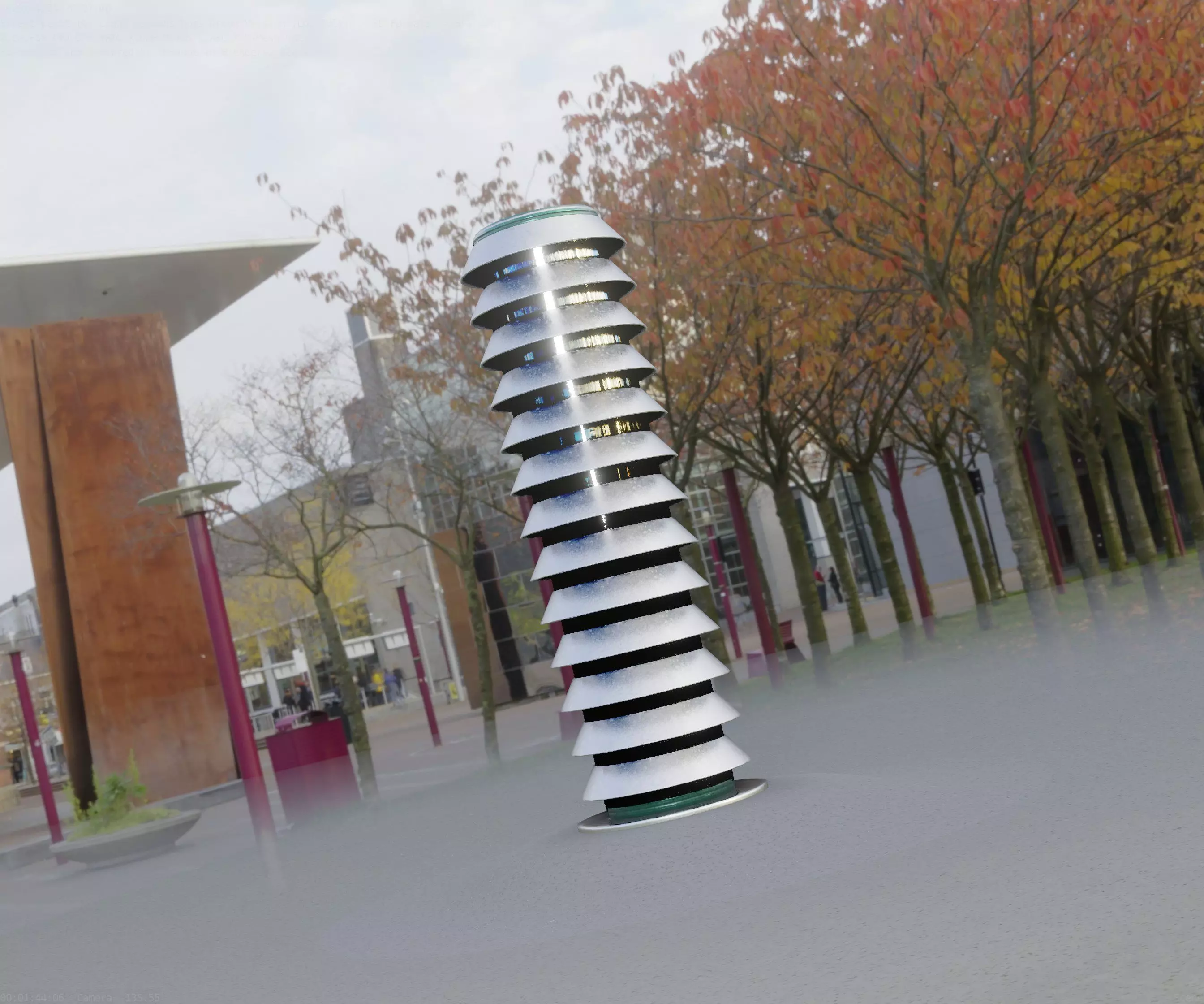 Low-Poly Moss Green Light Column 26 - Street Light Set-9 Low-poly 3D model