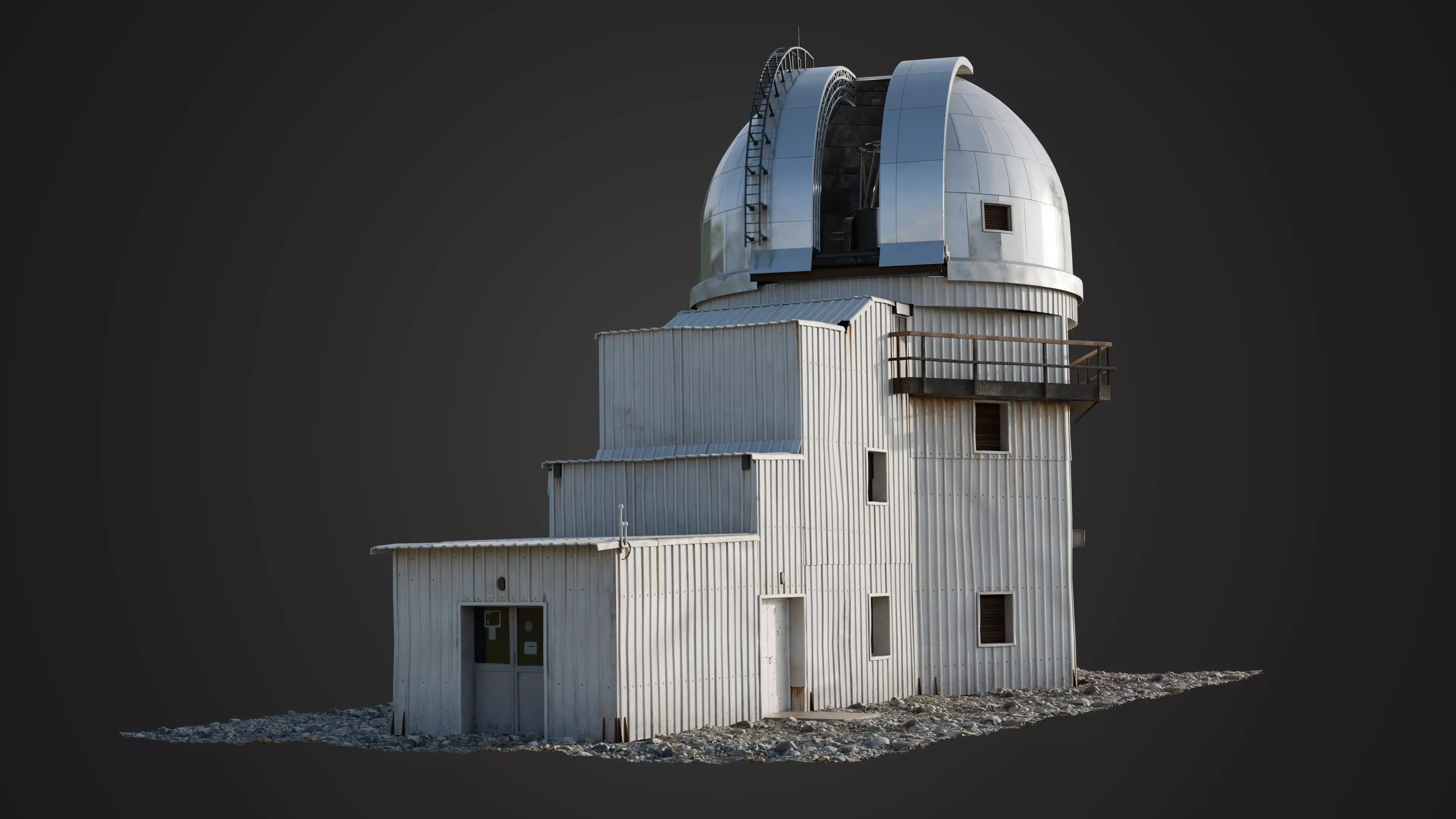 This is a high-quality 3D model of a realistic observatory building featuring a large metallic dome, ideal for sci-fi environments, astronomical simulations, or futuristic architectural scenes.