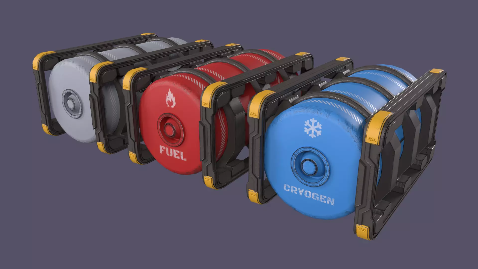 Low-poly Sci-Fi Barrel №2.Contain 3 models of Sci-fi barrel (white, red and blue)Part of Sci-Fi collection, which contains some sci-fi props.