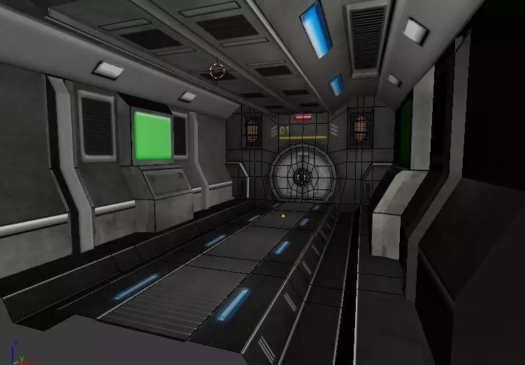 Sci-fi Corridor with Door and floor and Diagonal Corners Low-poly 3D model