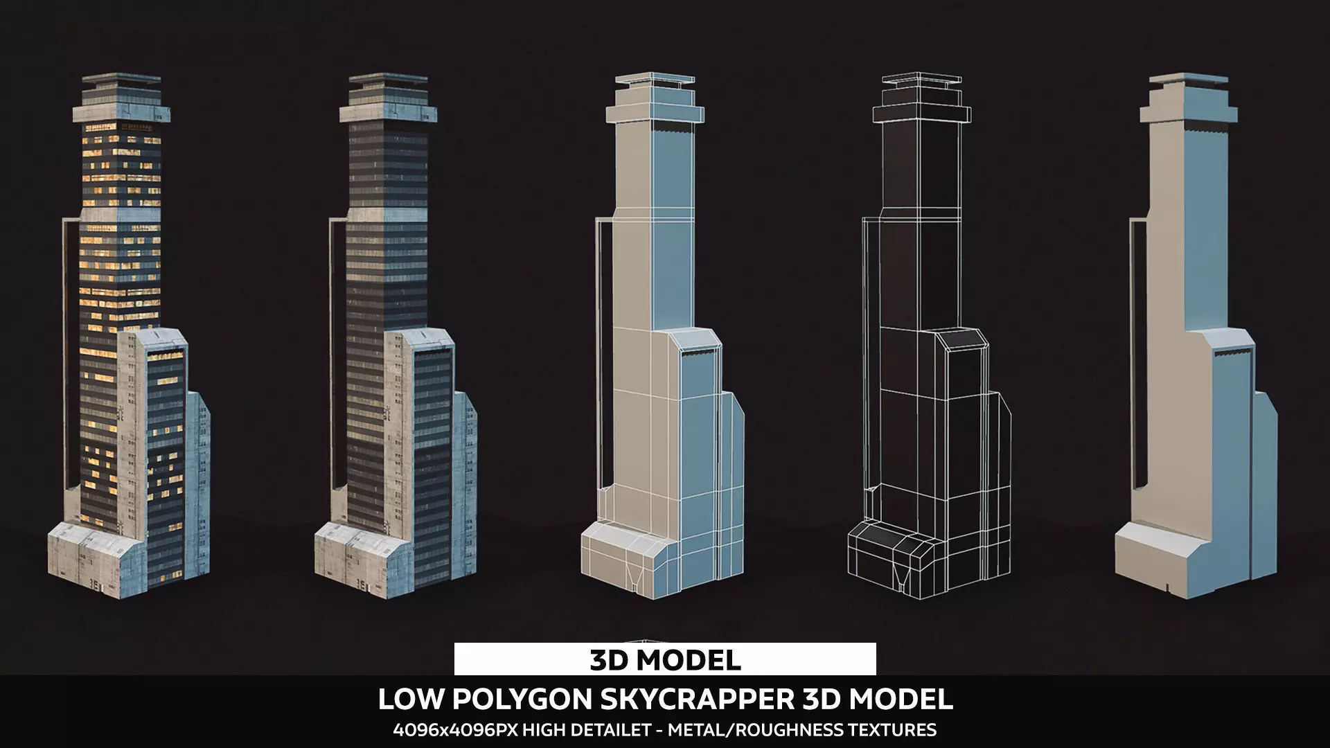 Sci-Fi Low Polygon Skycrapper 3D Model
