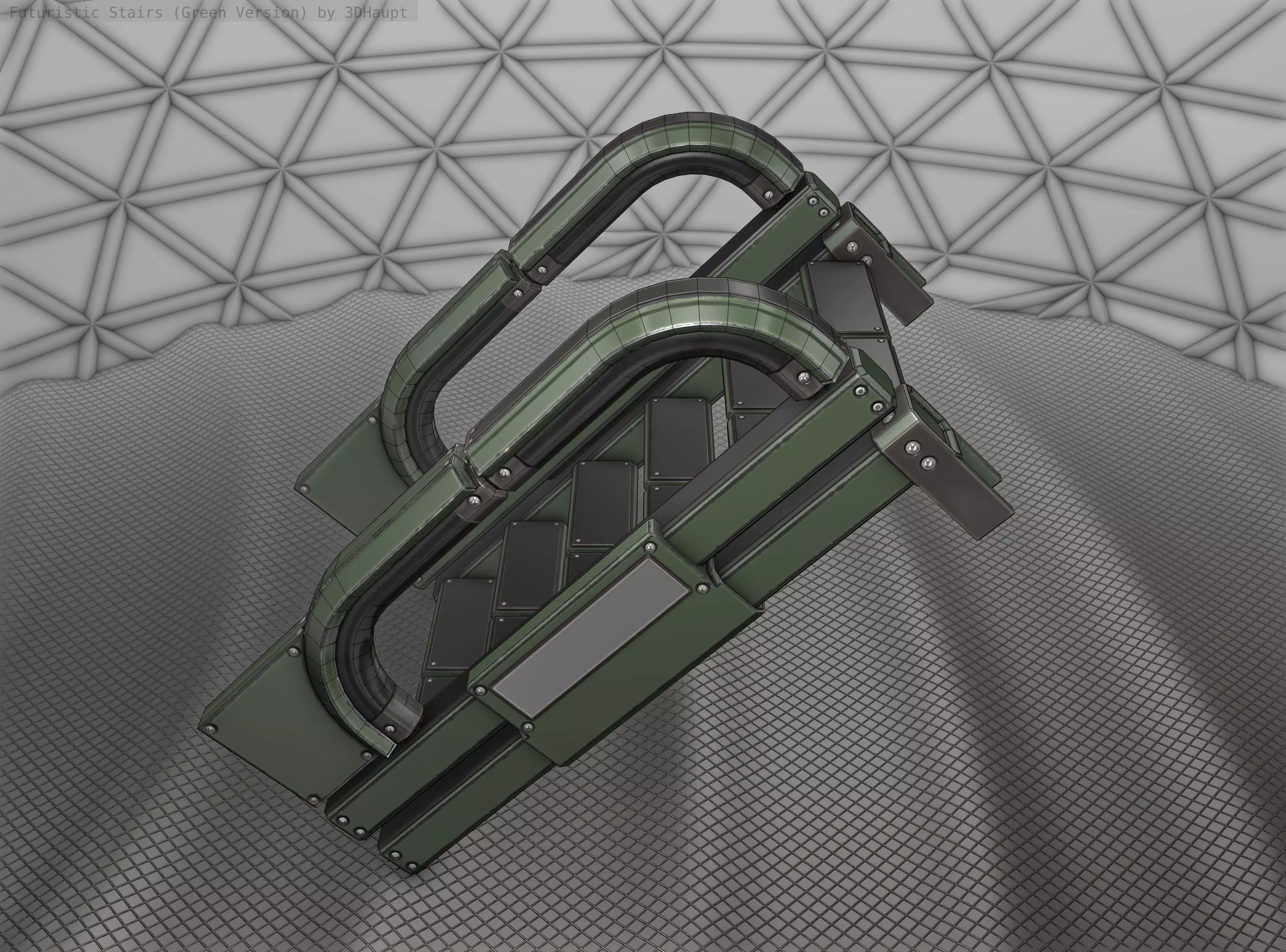 Sci-Fi Stairs - 2 - Green Version Low-poly 3D model