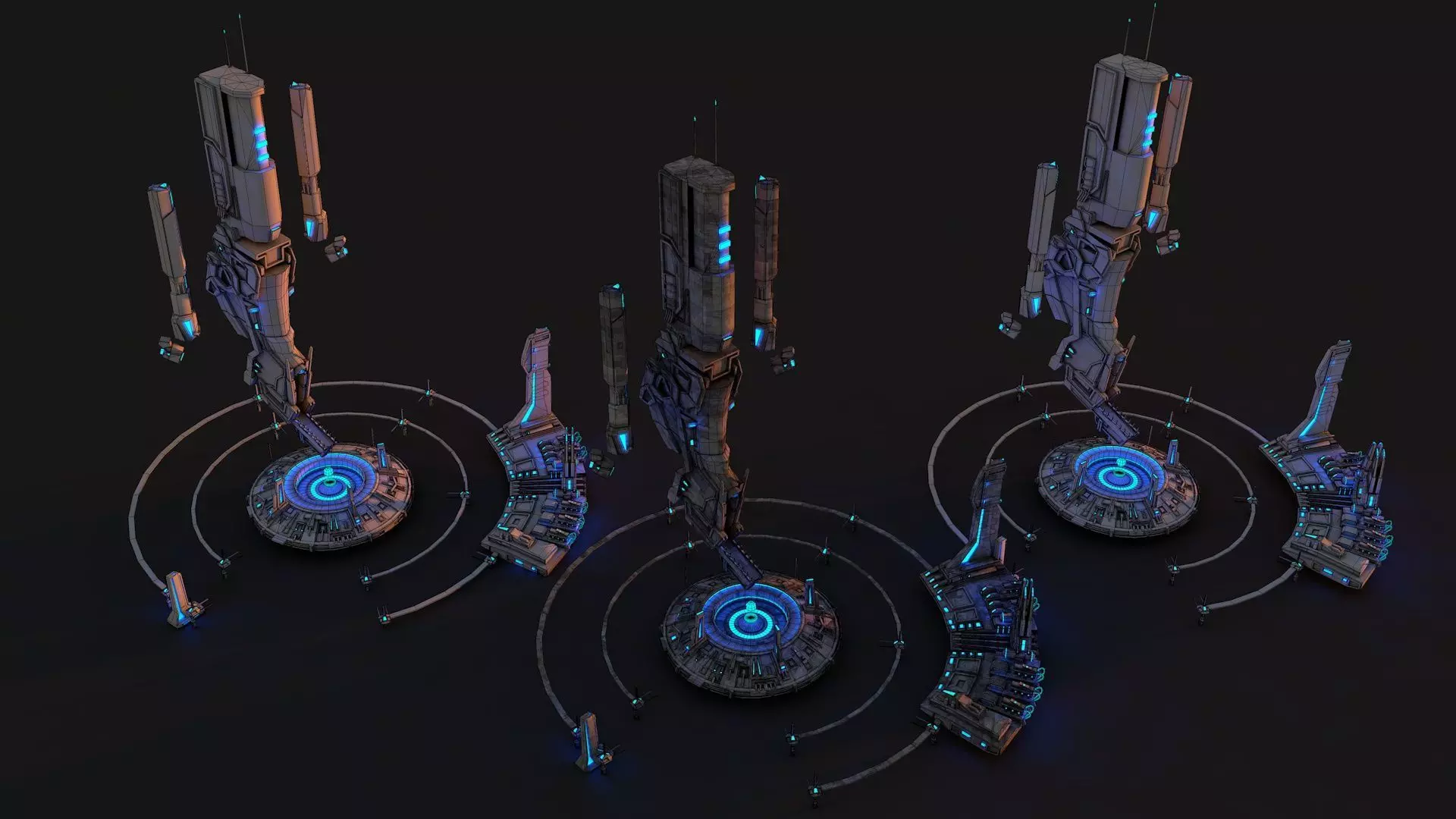 Sci-fi Tesla Coil Building Low-poly 3D model