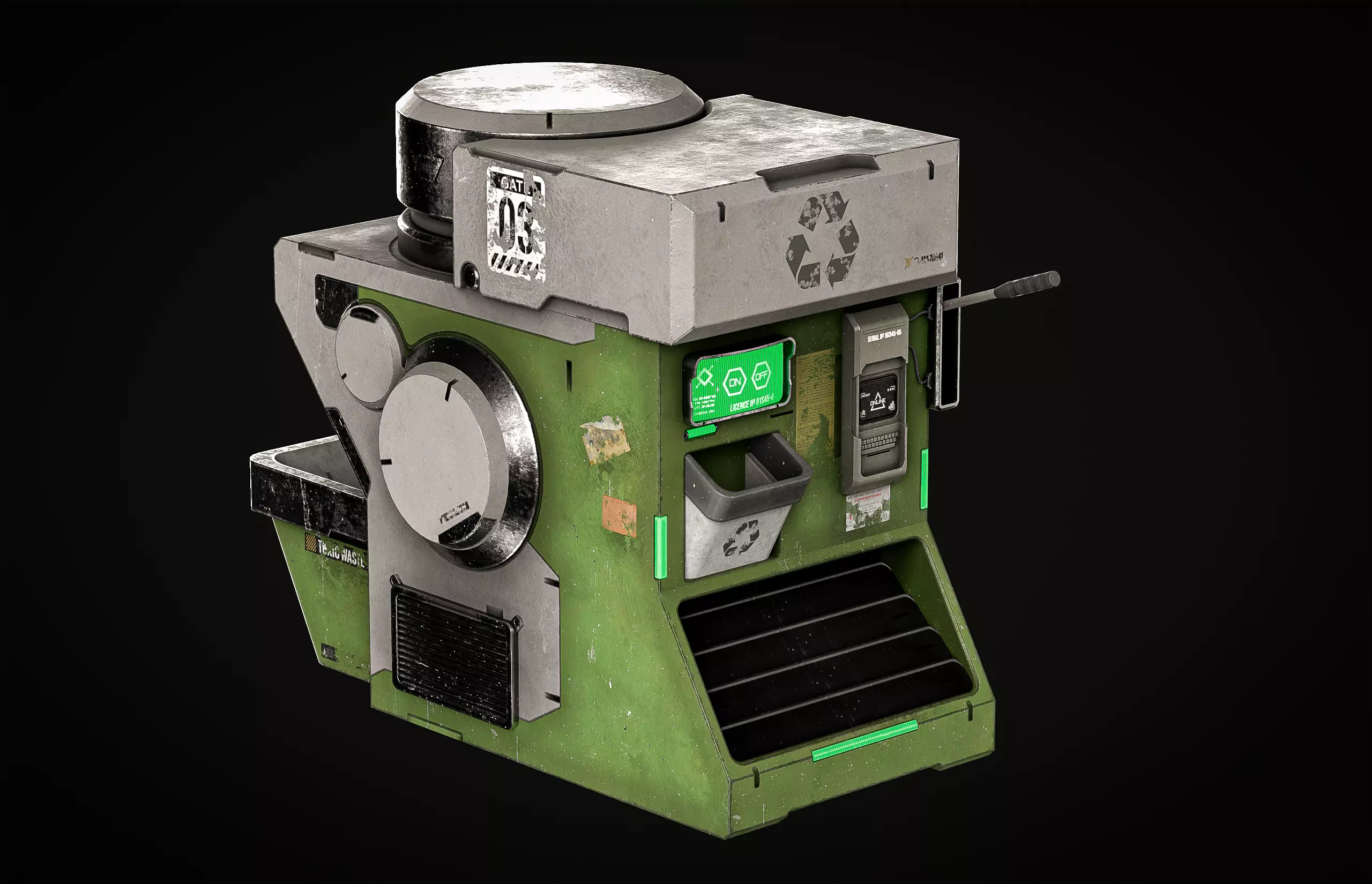 Faces 4,262Tris 6,868Verts 3,774PBR Texture 4KOBJ STL FBX MTL Formats and Textures filesHigh/Low Poly - BlenderBake and Render - Marmoset ToolbadSubstanse Painter - Texturing Photoshop - alpha Industri Sci-fi style