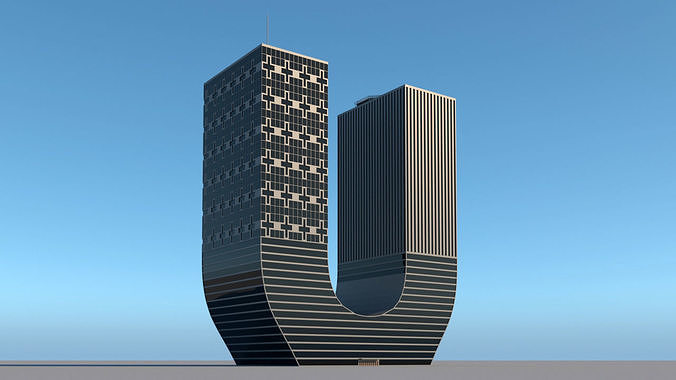 Life-size U-shaped skyscraper. 3D model ready for games, advertisements and more.