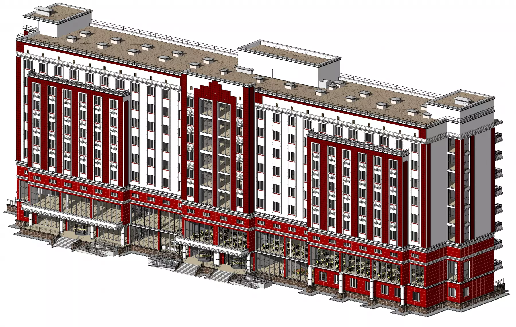 The model has material settings that define how surfaces look (color, shine, transparency, etc.).