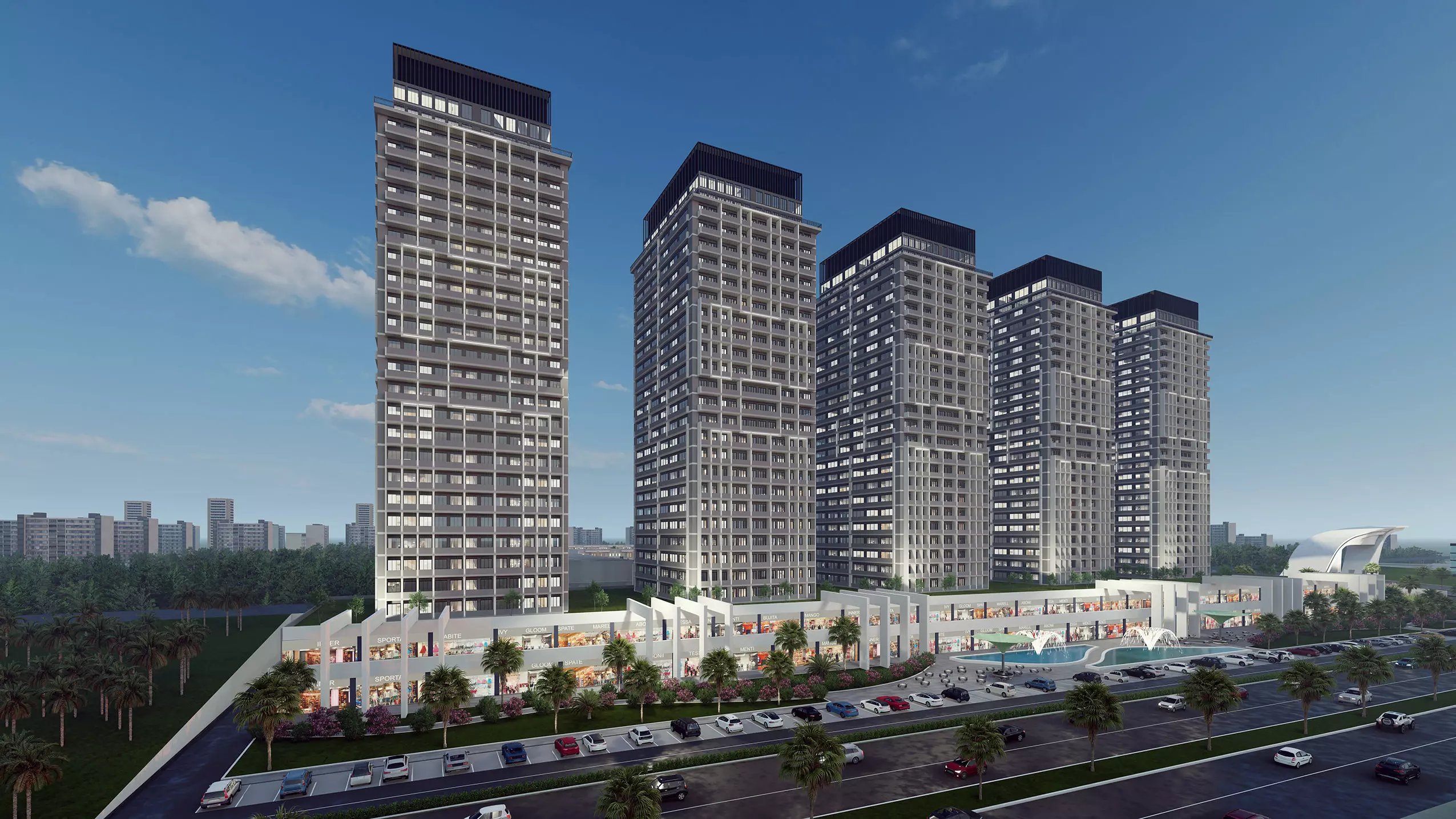 Here's a detailed 3D model I created, inspired by a prominent modern architectural project. This complex stands out with its high-rise towers reflecting a dynamic urban structure and a vibrant shopping/social area.