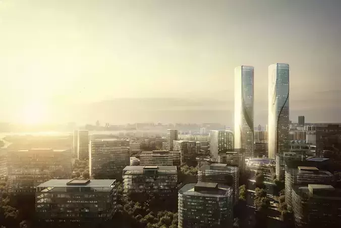 Modern Twisted Twin Skyscrapers Complex 3D model
