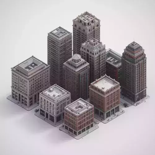 Modular Urban Building Kit 3D ModelsDescriptionThis is a high-quality 3D modular urban building kit, featuring a collection of realistic city architecture parts. The set includes various multi-story structures designed with classical and industrial-inspired facades, utilizing red brick and decorative stone materials. It is designed as a game-ready asset collection, ideal for creating dense, high-fidelity urban environments or city-planning visualizations.
