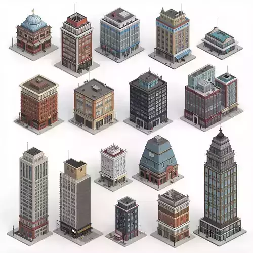 Modular Urban Building Kit 3D ModelsDescriptionThis is a high-quality 3D modular urban building kit, featuring a collection of realistic city architecture parts. The set includes a diverse array of multi-story structures designed with a mix of classical, mid-century, and modern industrial facades. It is designed as a game-ready asset collection, ideal for constructing dense, high-fidelity urban blocks or city-planning visualizations.