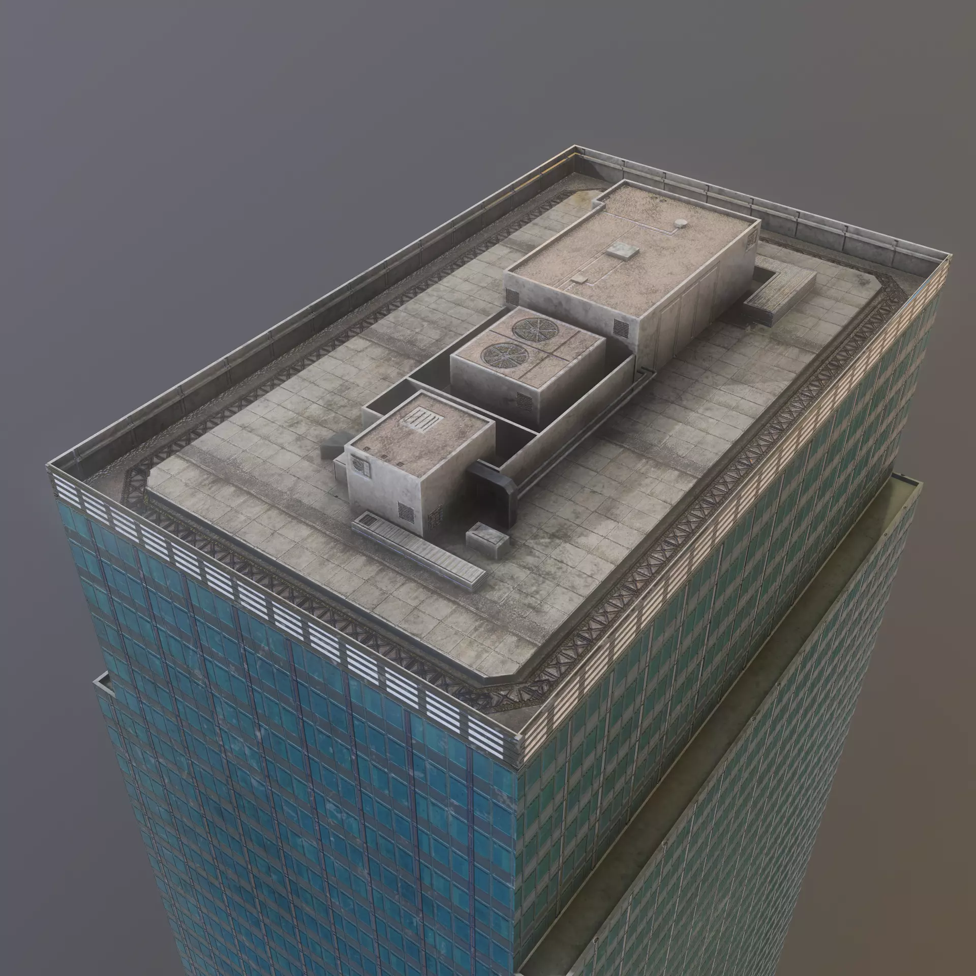 Low poly model of skyscraper, it is PBR with 4k resolutions. This is a low poly model with 1041 polys. This is an ideal opportunity to decorate your scene with an object that will be in other plans, and that would be seen from a long distance. All dimensions are by ratio 1:1. The model has 1 daylight mode and 1 night mode map, metallic, normal, height, roughness.