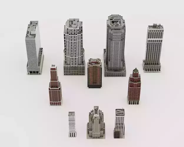 This premium 3D model pack includes 12 unique skyscrapers and high-rise buildings in diverse architectural styles, ranging from modern glass towers and brutalist designs to classic brick facades and art deco influences. Each building features detailed exteriors with windows, rooftops, antennas, and realistic proportions. Low-poly optimized with high-quality textures, clean topology, and modular elements for easy integration. Perfect for cityscape scenes, urban visualizations, game environments, animations, VR/AR projects, or architectural renders. Ready for subdivision and customization
