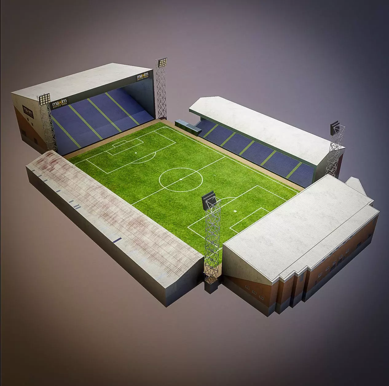 Low poly model of a Fir Park stadium, it is non-PBR with 4k resolutions. This is a low poly model with 11566 polys. This is an ideal opportunity to decorate your scene with an object that will be in other plans, and that would be seen from a long distance. All dimensions are by ratio 1:1. The model has 1 daylight mode and 1 night mode map.