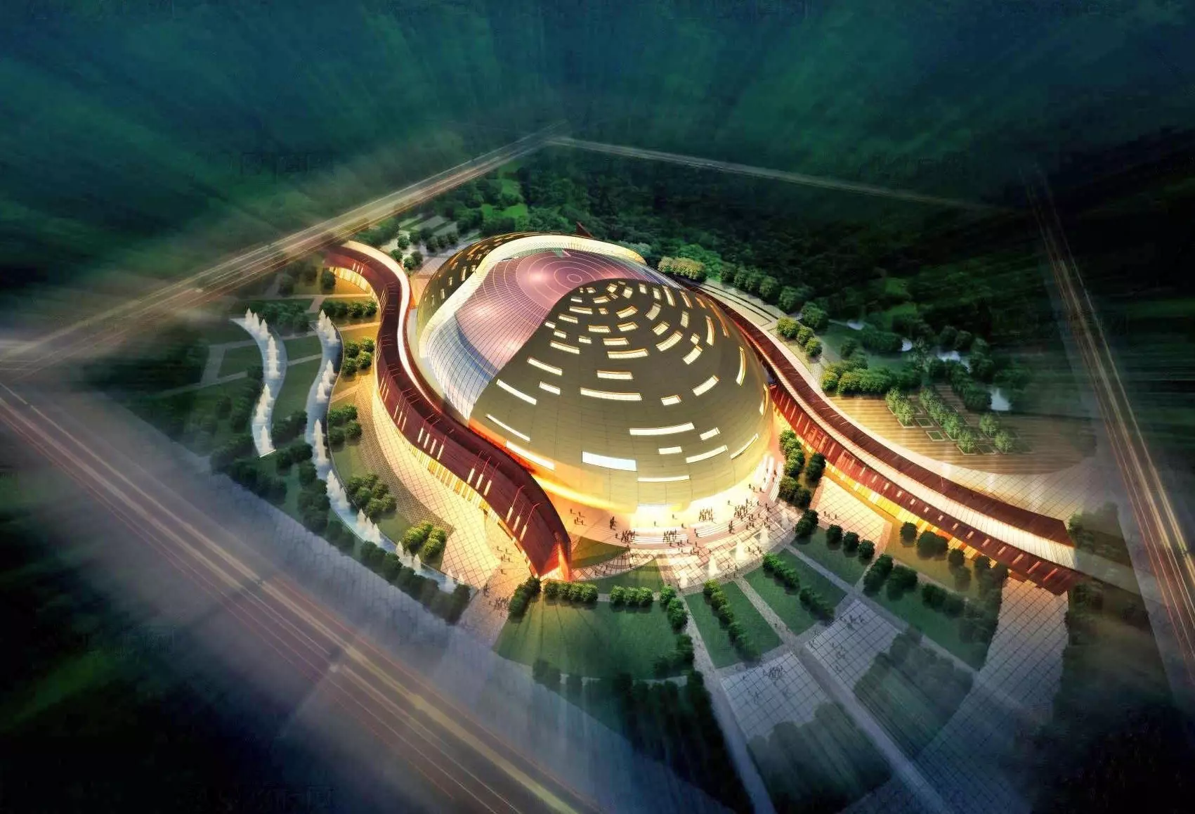Futuristic Cultural Center with Elliptical Dome 3D model