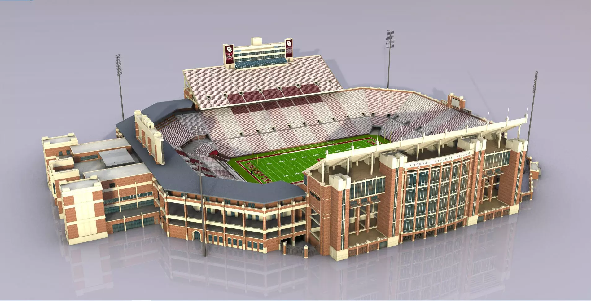 The intellectual property depicted in this model, including the brand ,,Gaylord Family Oklahoma-Memorial-stadium'' is not affiliated with or endorsed by the original rights holders. Editorial uses of this product are allowed, but other uses (such as within computer games) may require legal clearances from third party intellectual property owners.