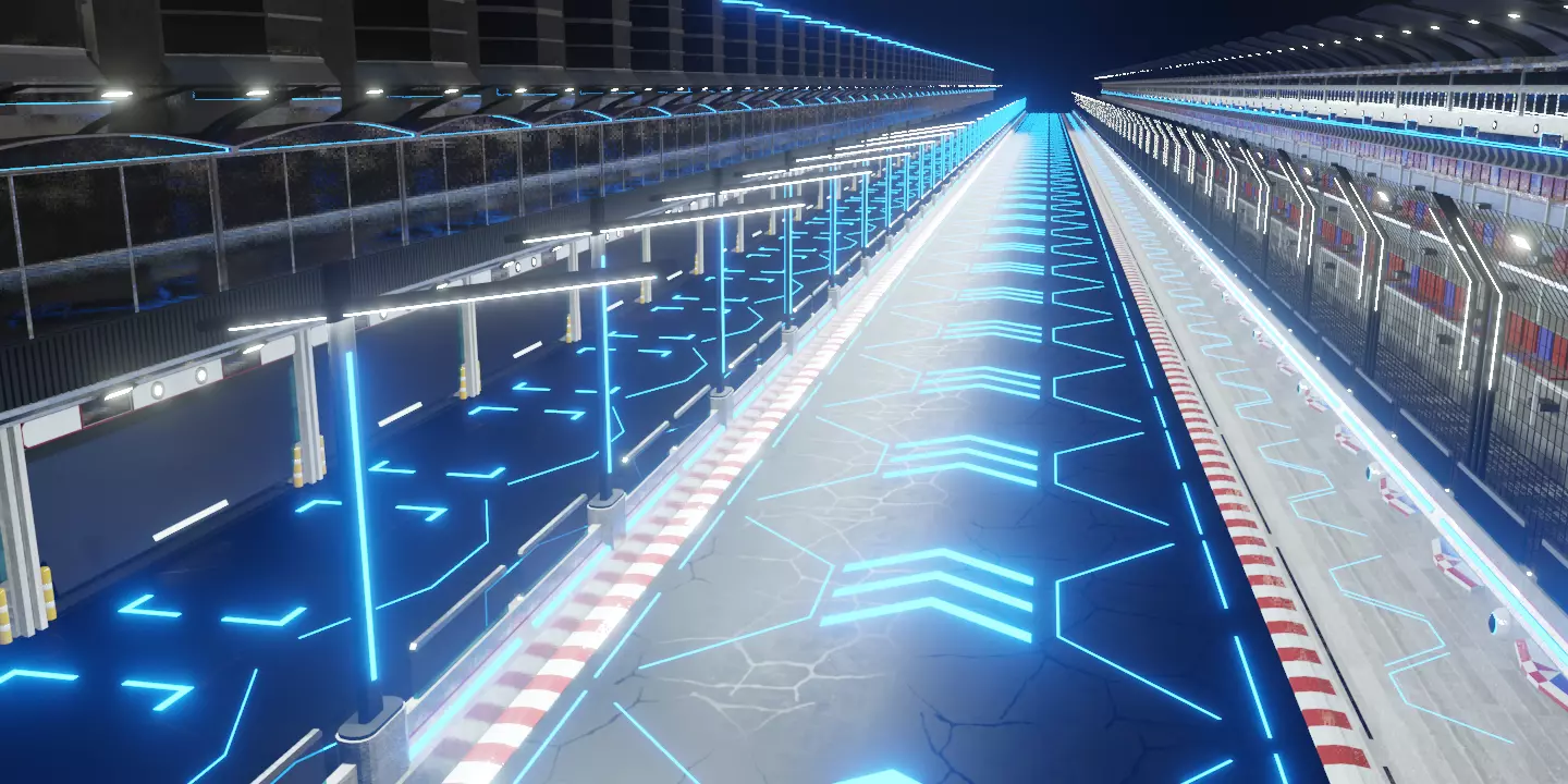 3d design of a generic race track, the design was made in blender, it is rendered in cycles and evee, the design is ready to perform a repetition of it to obtain the desired length.