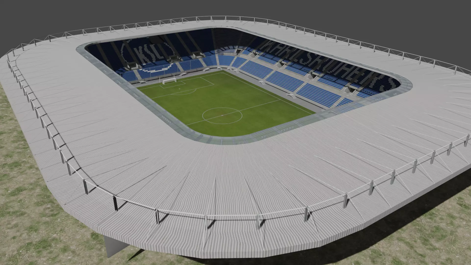 The 3d model of Wildparkstadion is created particularly for football video games. The model is created low-poly to adapt video games. The stands, roof and other objects are resembling real-life. The scale of the model is 1:1. The 3d model and render results were built in Blender 3.0. Also a pair of goals are included within model.