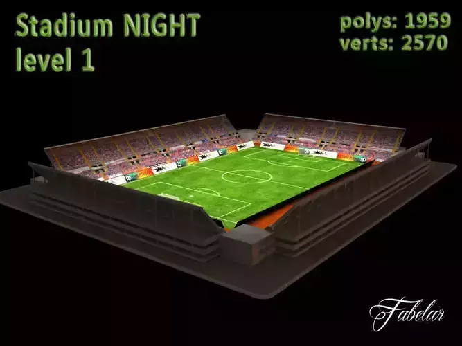Stadium level 1 lowpoly 3D model. Vray, scanline, multiple import formats. Nighttime settings.