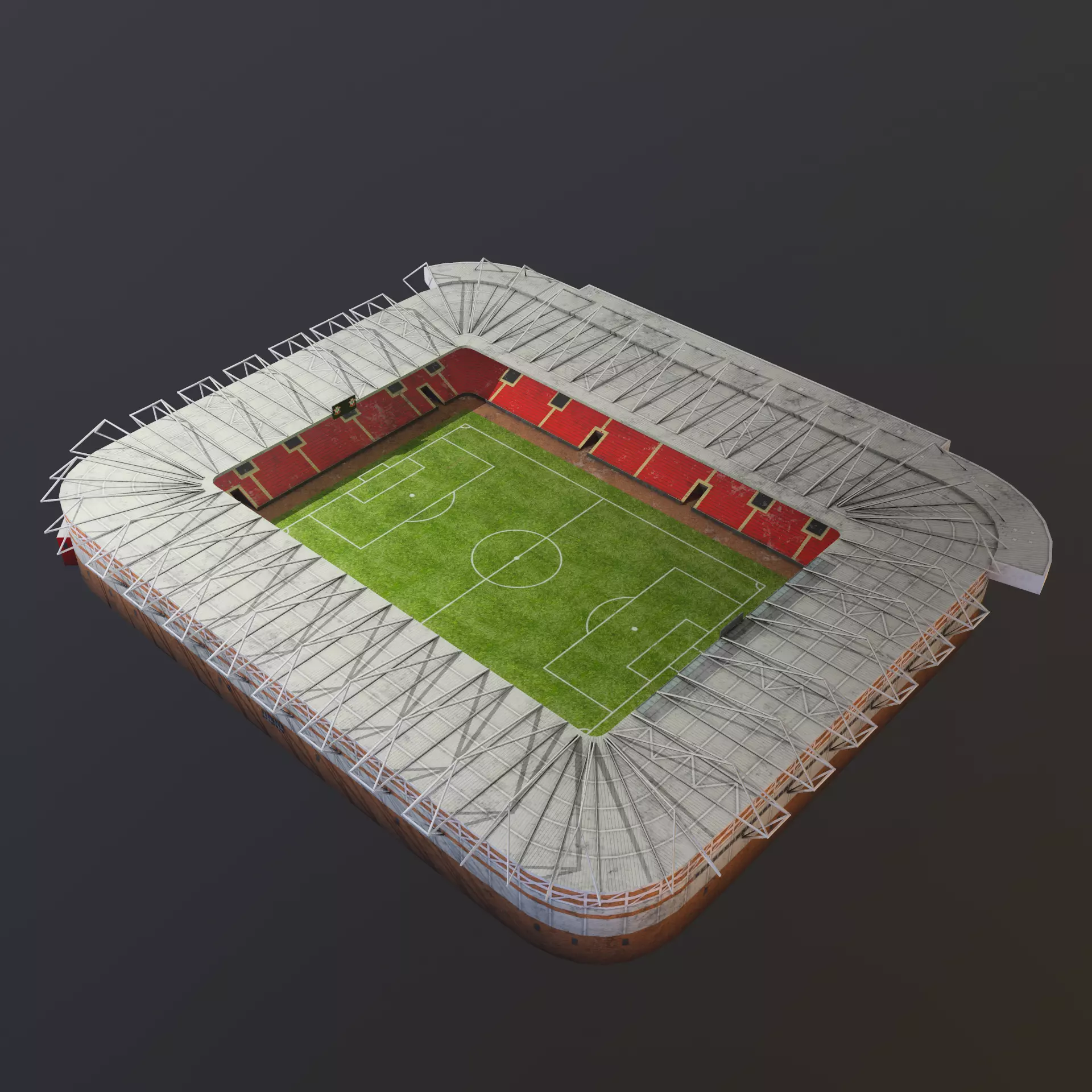 Low poly model of a St Mary's stadium, it is non-PBR with 4k resolutions. This is a low poly model with 1696 polys. This is an ideal opportunity to decorate your scene with an object that will be in other plans, and that would be seen from a long distance. All dimensions are by ratio 1:1. The model has 1 daylight mode and 1 night mode map.