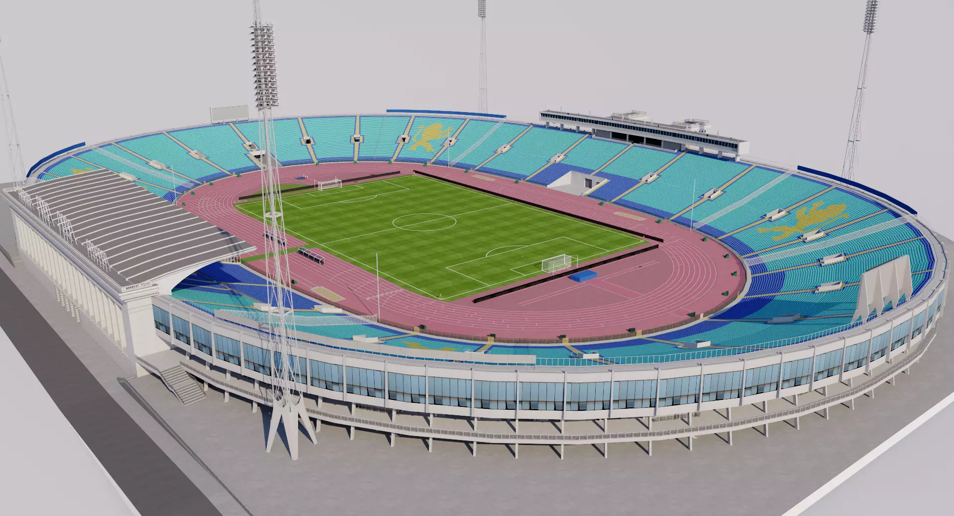 Starter model. Approximate dimensions. Bleachers and seats in 2D texture.