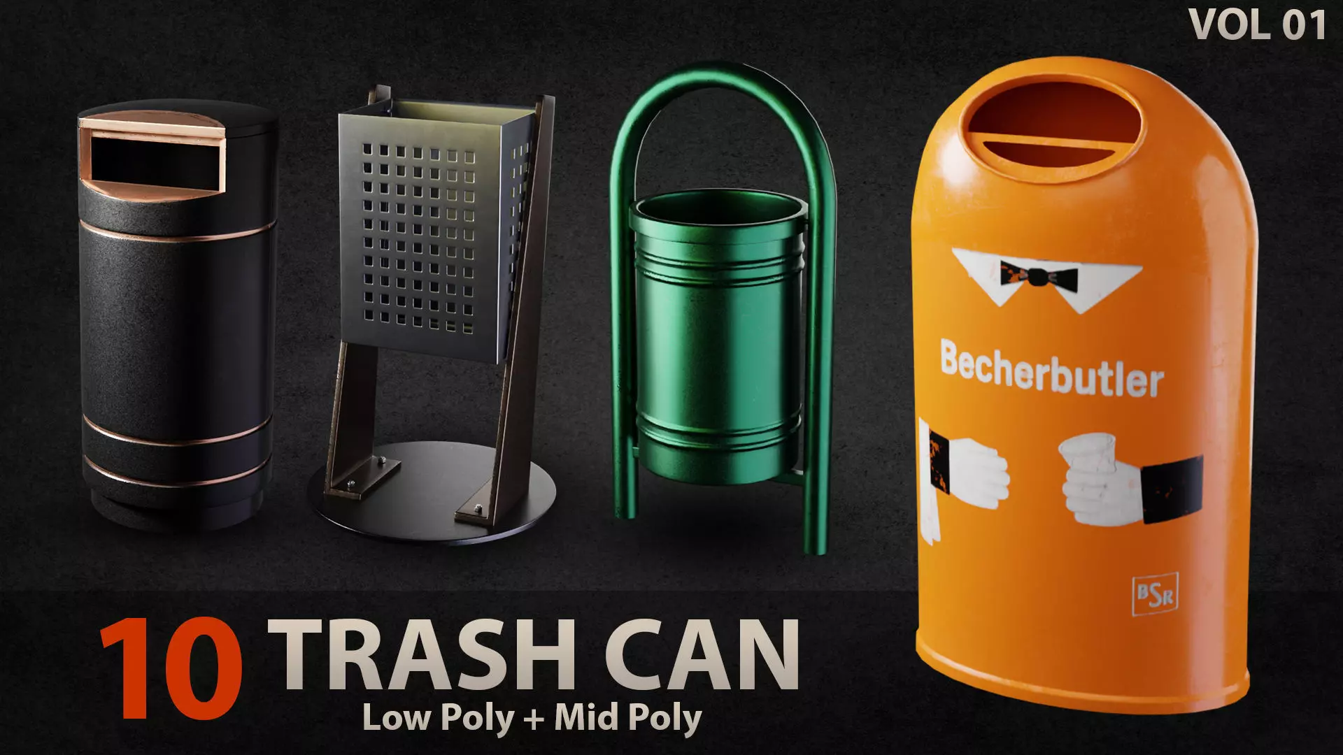 One way to increase the speed of doing a 3D project is to use ready and final models. By purchasing this product, you will receive 10 models of trash cans in low poly and high poly. The UV of each model is individually Unwrapped in the RizomUV software and materialized in the unrivaled substance painter software. The number of triangles of low-poly models is on average 9500 and high-poly models is 53000.