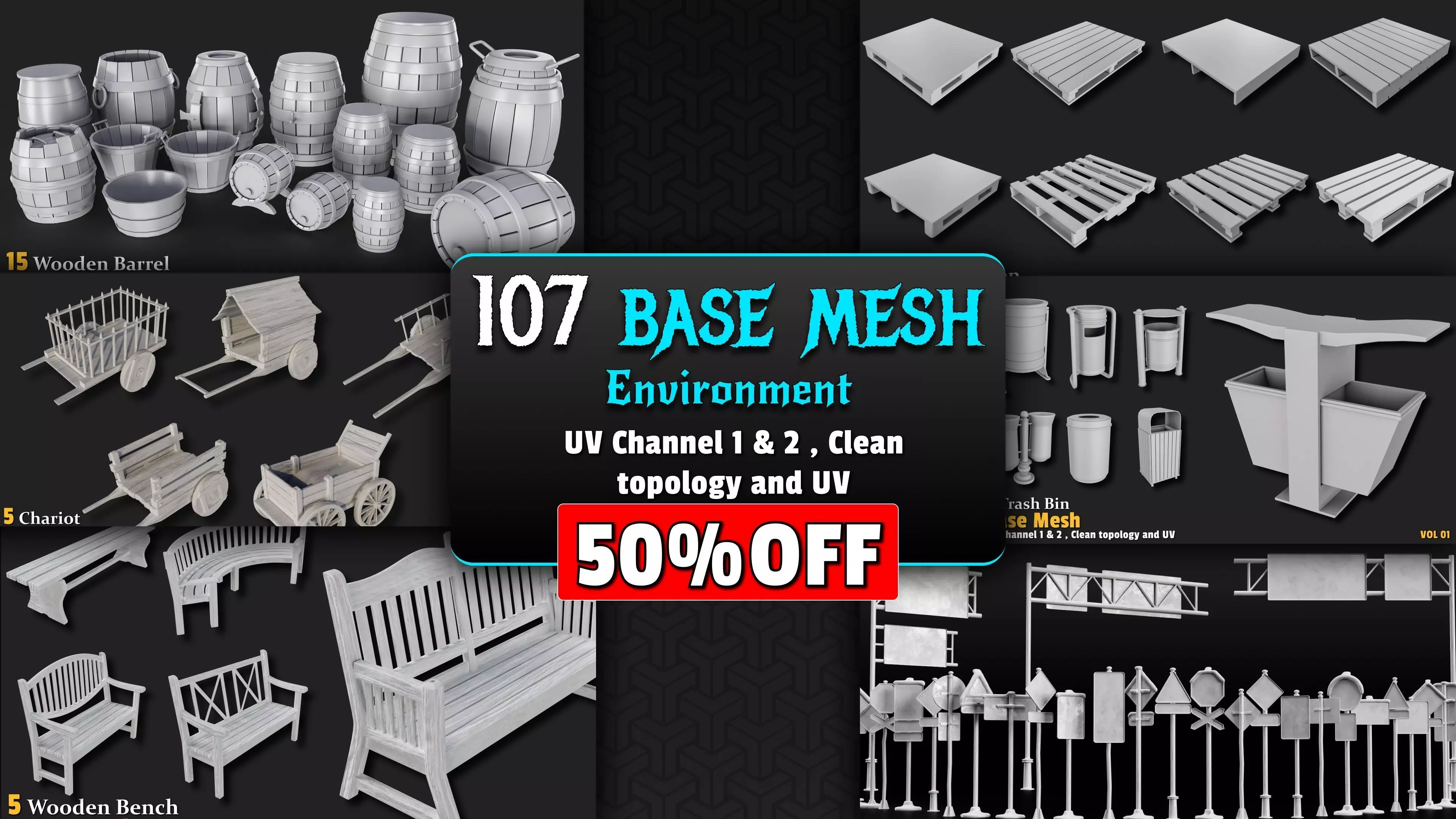 *Low-to-Mid poly range (200–13k) perfect for games & rendersSuper-clean UVs on two channels zero headaches when texturingJust import and slap on smart materials or hand-paint saves dozens of hoursWorks for any project: modern city, village, post-apo, historical, fantasyAnd the best part: perfect for material practice! These meshes are ideal subjects to test smart materials, manual layering, rust, wood, plastic, snow, and every texturing technique – level up your portfolio fast!If you build environments every day and are tired of modeling barrels, benches, signs, and pallets from scratch, this pack is exactly what you need right now.*Link active only during Black Friday – this price will never return! Grab the ultimate environment + material practice kit now!