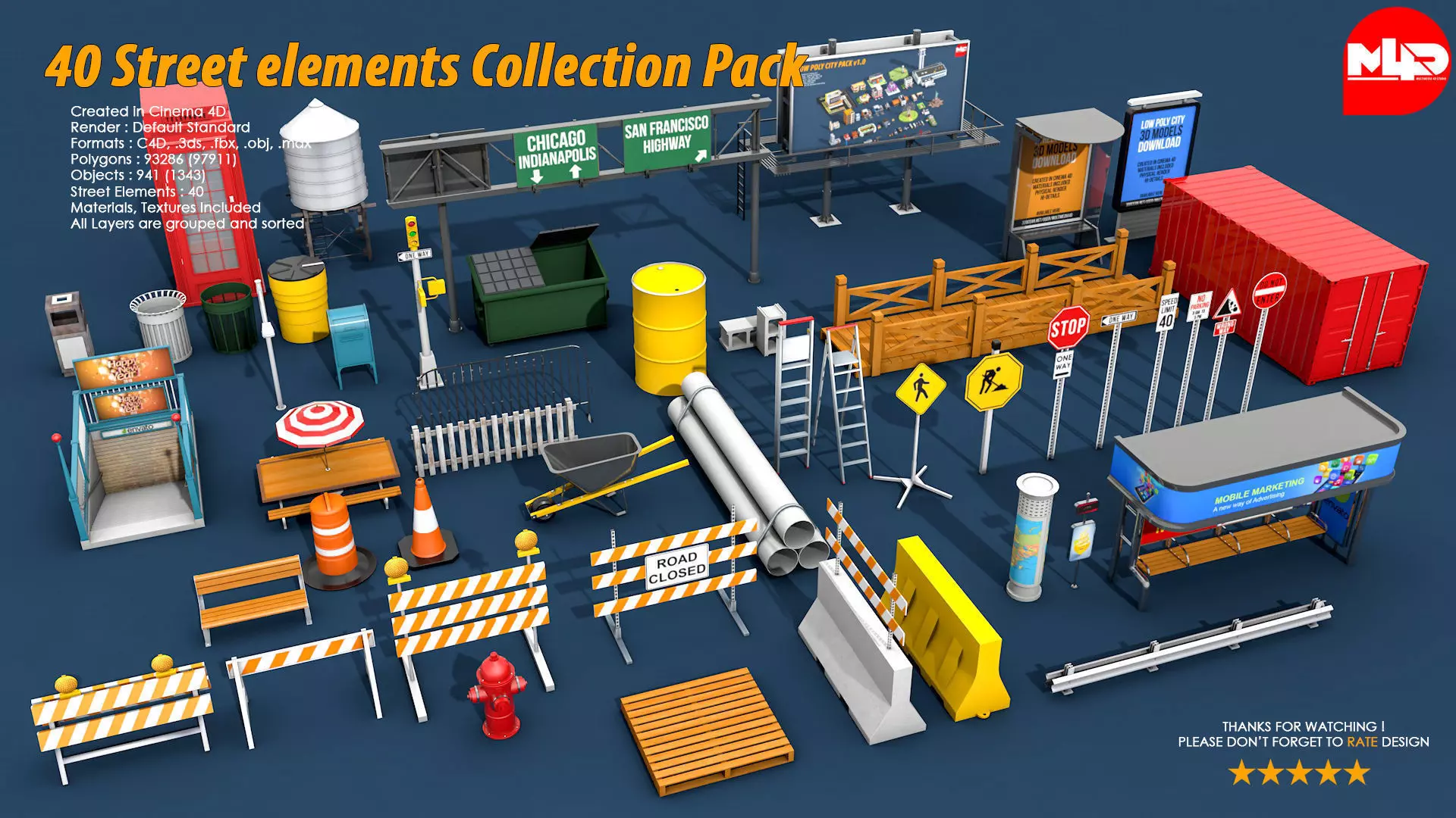 40 Street Elements Collection Pack 3D model