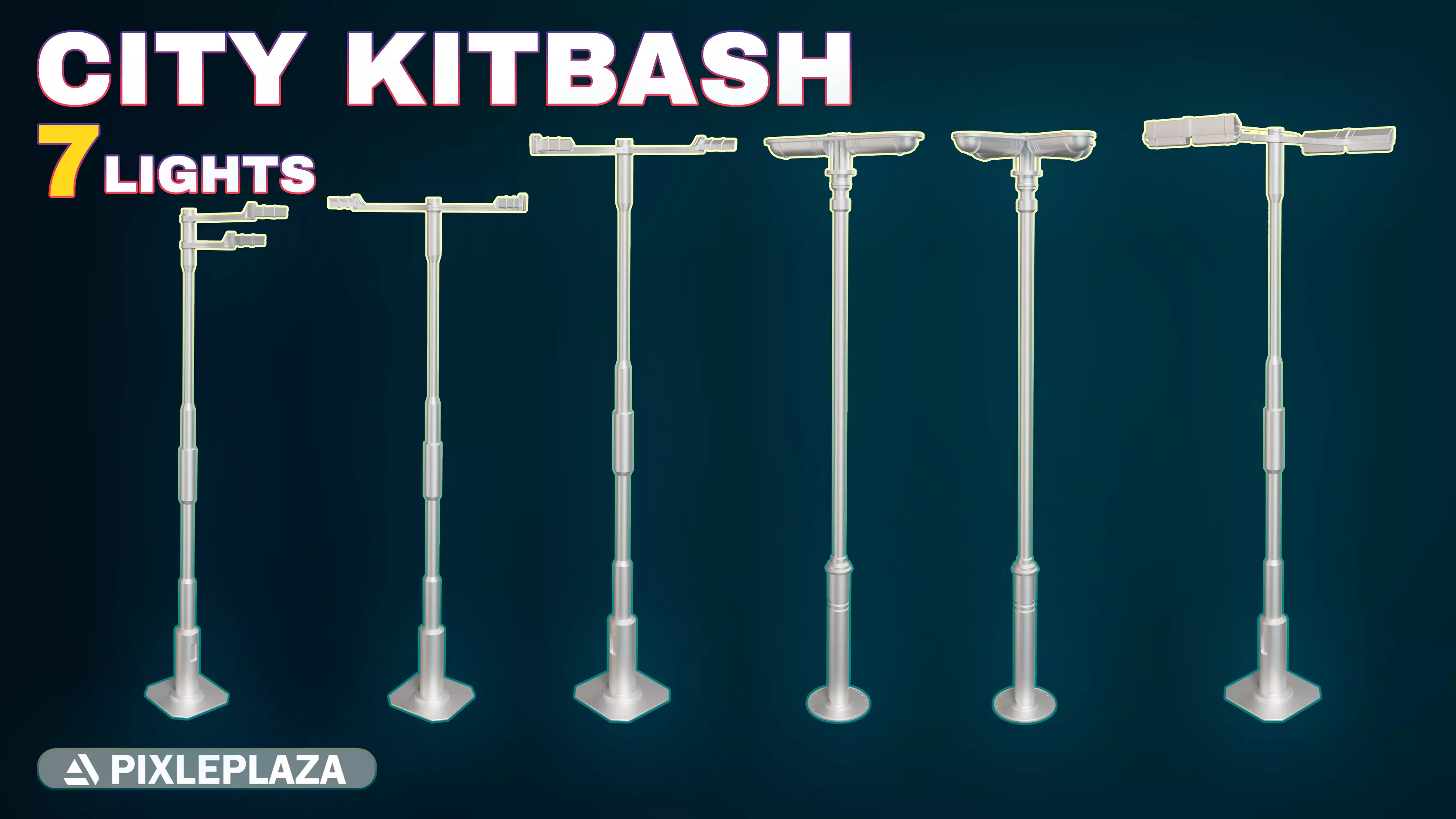 collection of 7 street lightslow poly game ready street lights for making realistic and sci-fi video games and movies all modes have clean UV and Topology street lgiht - trafic lightcity kitbash
