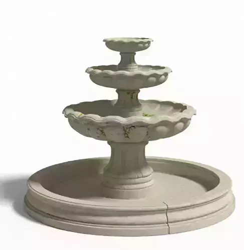 Realistic Moss Details The most striking detail is the green moss and algae growing on the edges of the middle bowls. These green stains show that the fountain has been wet and exposed to nature for a long time, adding a layer of history to the object.