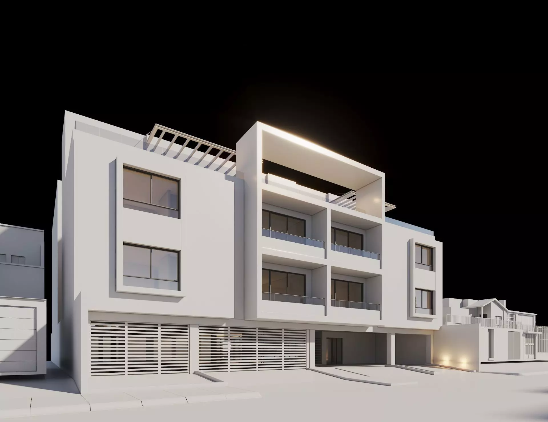 FULL CGI 3DS MAX VRAY 3D model. The project is a modern apartments building with contemporary design. This model contains 3ds Max 2022 and 2019 scenes/cameras ready for render in vray like you see in renders/screenshots. Lighting in Textured in 3ds Max and Vray,with the same render settings and lighting. 3ds Max native and exported to DWG, FBX, OBJ, SKP and (.3dm) Rhinoceros 3D (without textures in this exported file) . ZIP folder contains proxies, HDRI and textures. Feel free to use this models in your architectural and urban planning projects for exterior scenes in different file formats. You can practice and learn about the scene, lighting, render setup, camera and environment.