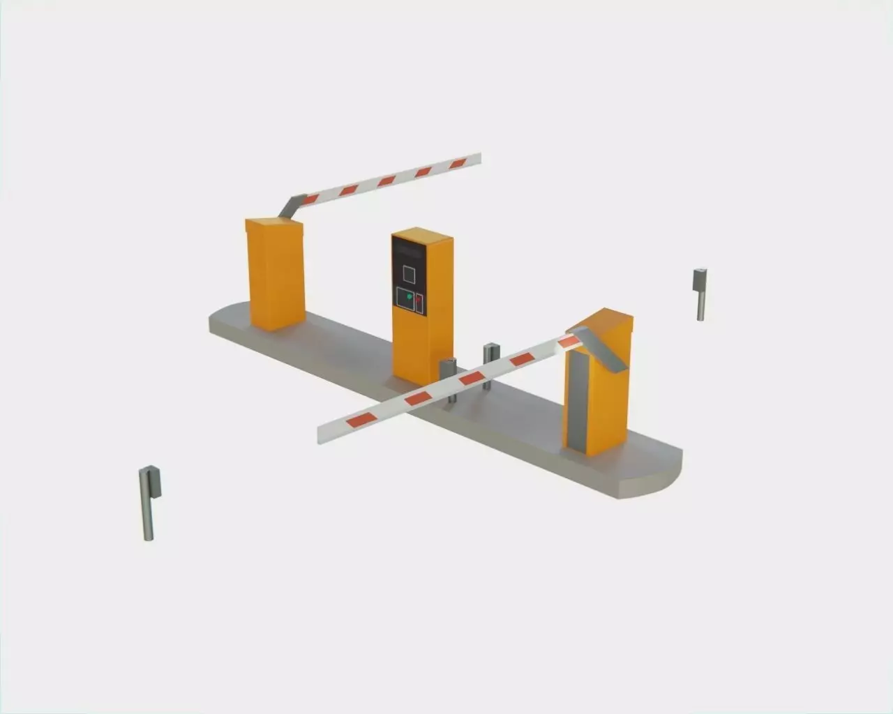 Lowpoly parking Lot barrier gates with ticket dispenser machine and photo cells.The texture is painted by me from scratch.This model is good for archiviz renderings and other 3D scenes. Not for 3D print (you many need to do some extra work)Good for medium/long range shots, not for close-ups.