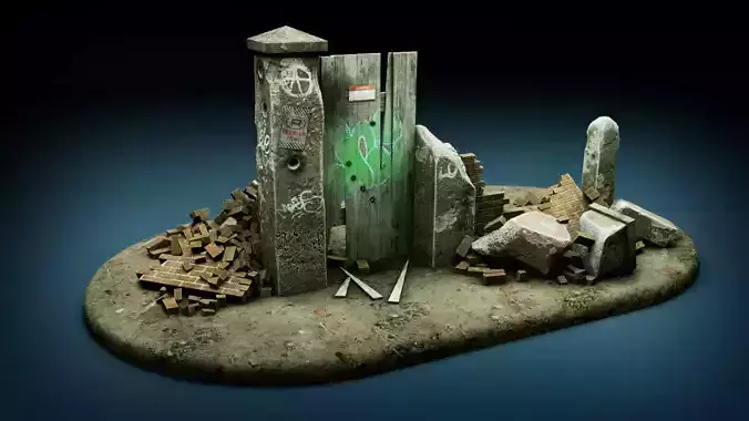 Blown Up Gate comes in a Ready To Render Blender scene, textured using Blender Principled BSDF textures, with a light panel and camera already in place, all you have to do is hit render to begin seeing results.