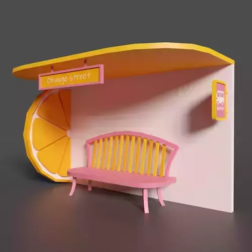 Bus stop Orange street Low-poly 3D model