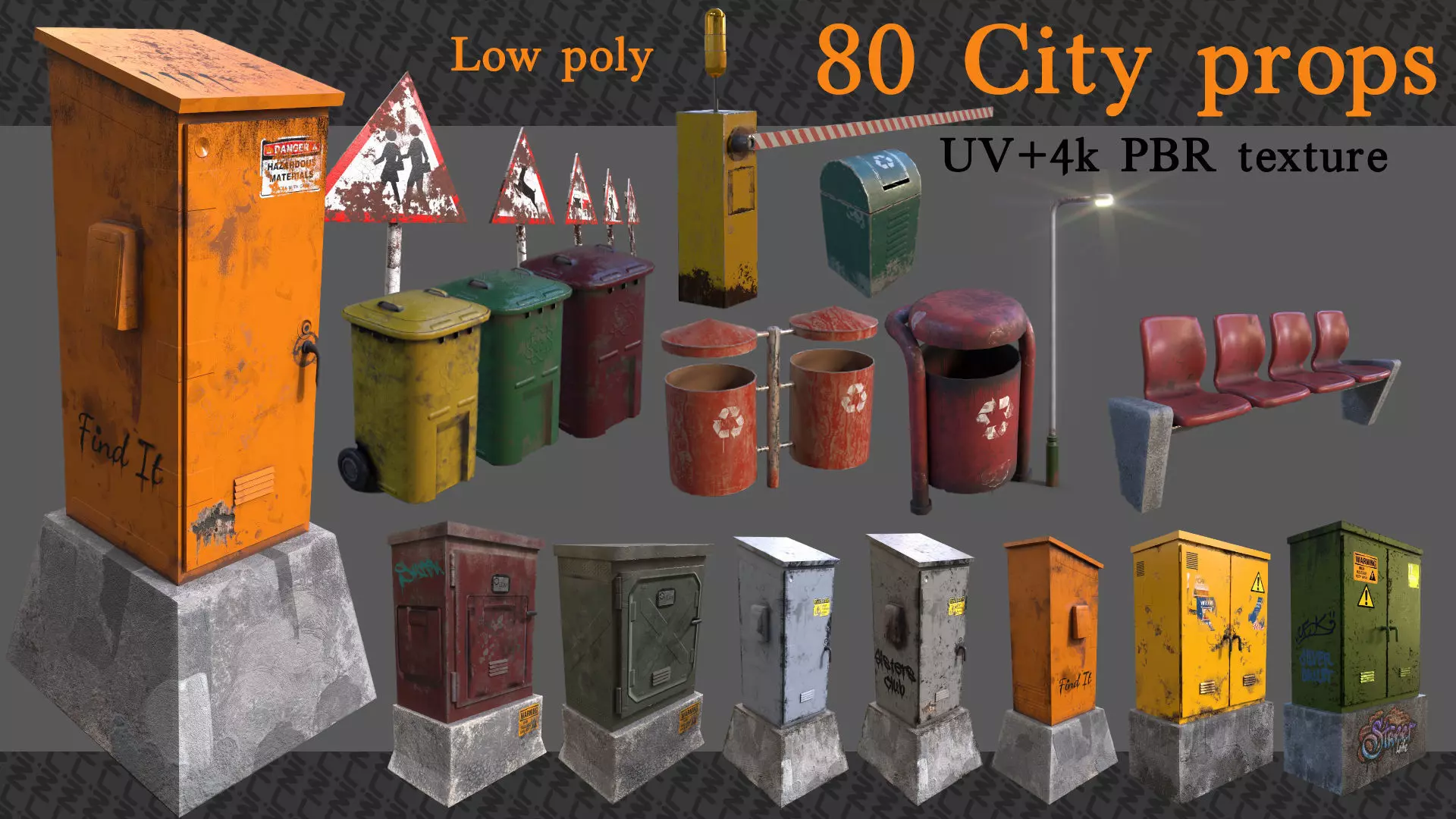 80 low poly object of City Props with 4K PBR texture