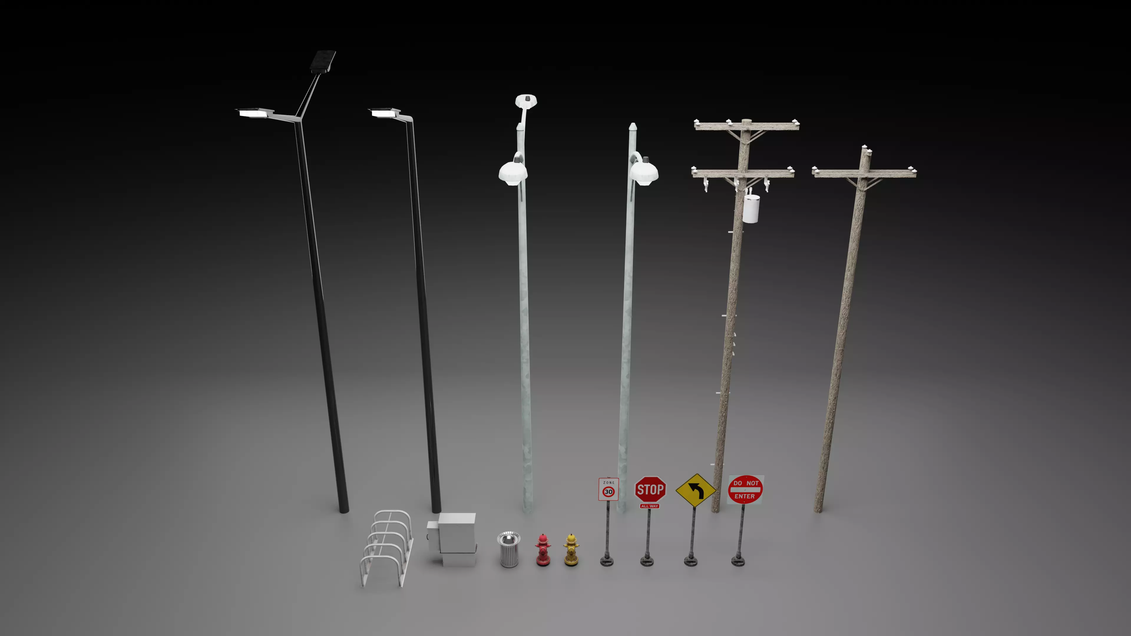 A small asset pack of various objects commonly found in city or urban streets. These models are intended for use in CGI scenes or enviornments. Each model has it's own associated texture and are generally low poly. The scaling of each object is close the real life counterpart, however these may need to be adjusted depending on the scene needed.
