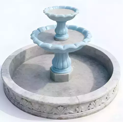 The Overall Concept This asset is a decorative tiered water fountain, typically found in the center of a town square, a rich estate garden, or a public park. It acts as a beautiful centerpiece that adds a sense of calm and history to any environment.