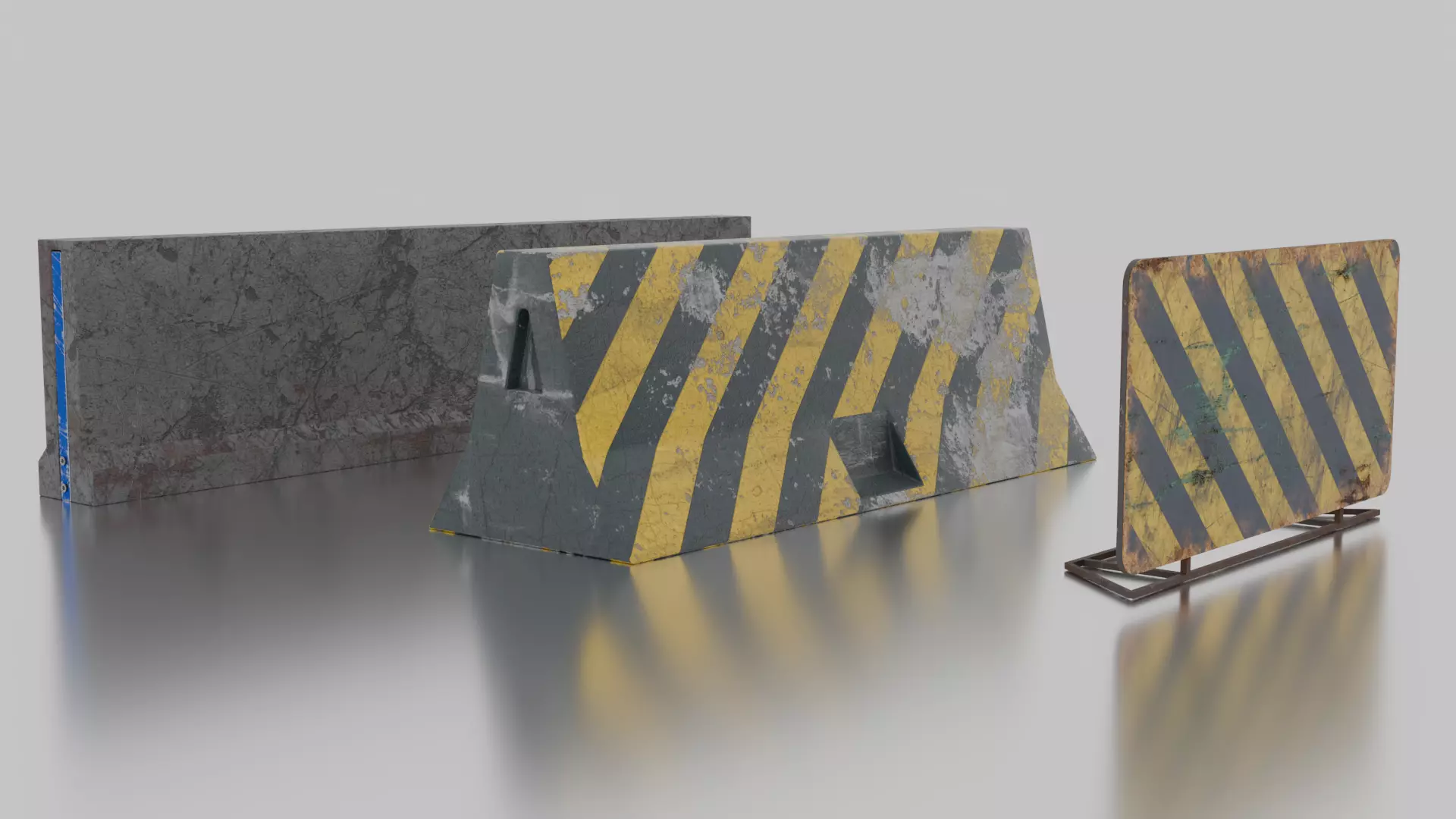 High poly concrete barrier package that you can use for your game, movie, 3d scene or any content. Models were created with Blender and textured with Substance Painter. Hope it will be useful for you :)