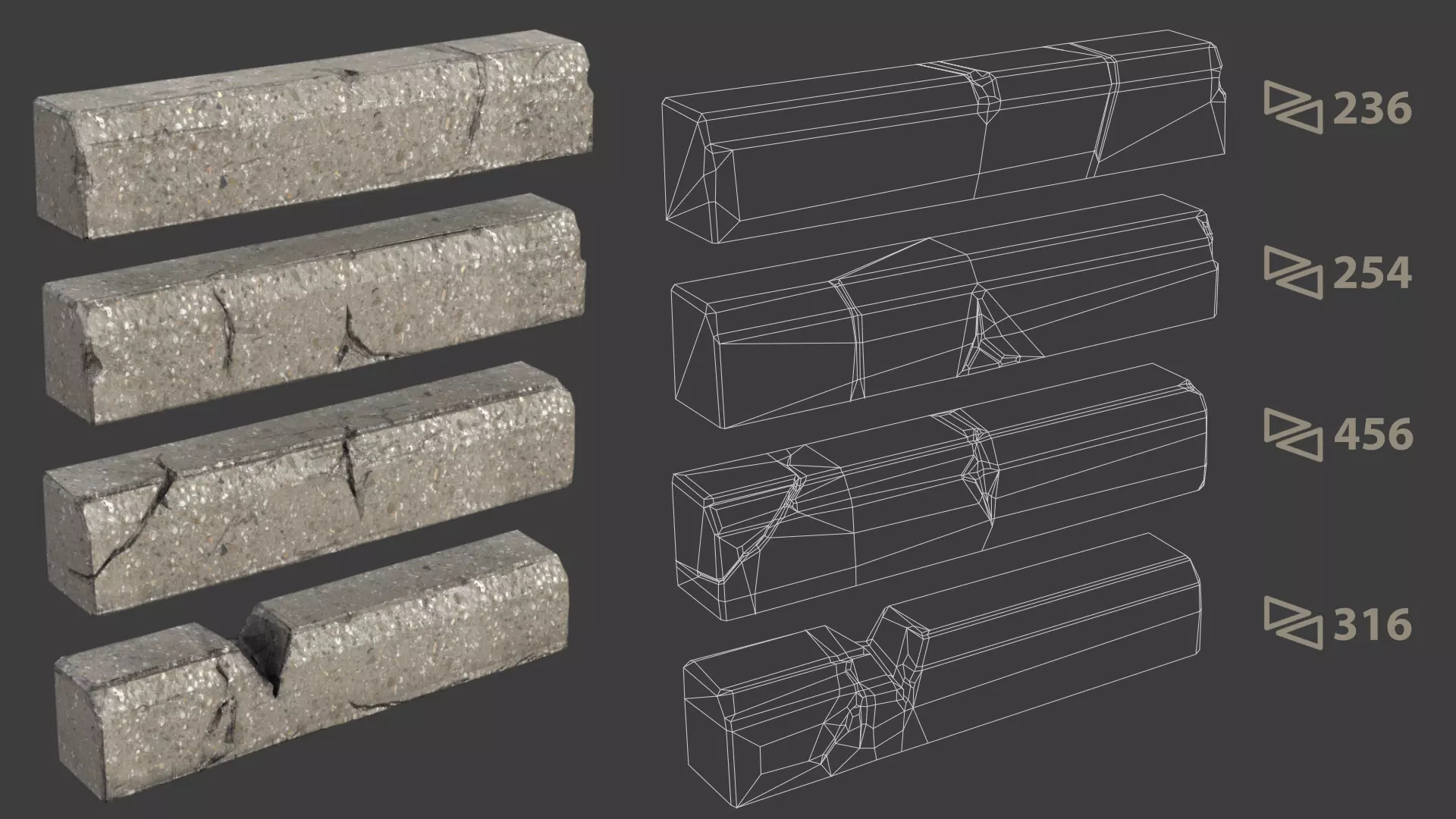 The total number of polygons (flat shapes) that make up the 3D model.
