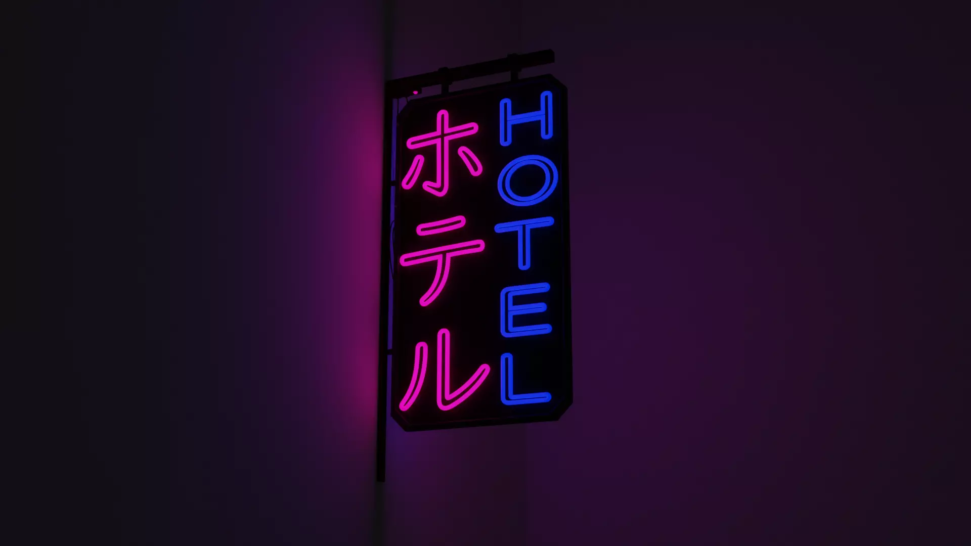 Cyberpunk Style Neon Sign with Japanese - Hotel Low-poly 3D model
